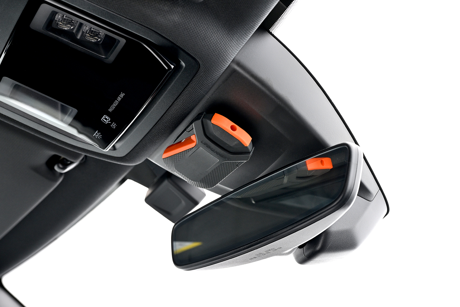 専用ホルダーを両面テープで手軽に固定できるため、サンバイザーなのどの稼働部にも取り付けが可能です。
