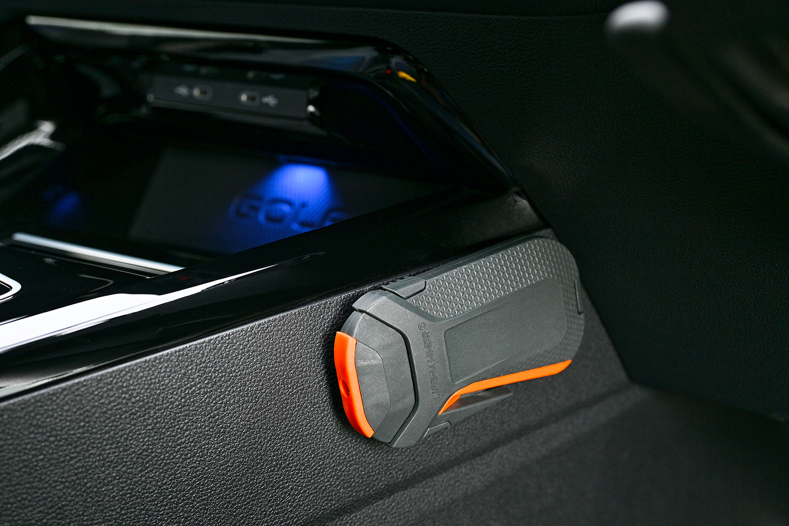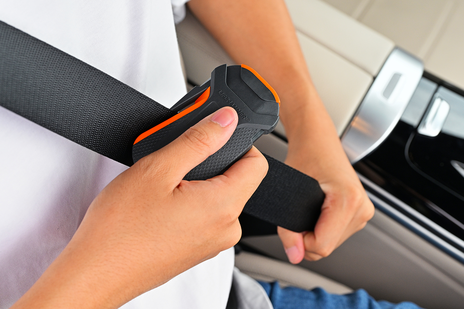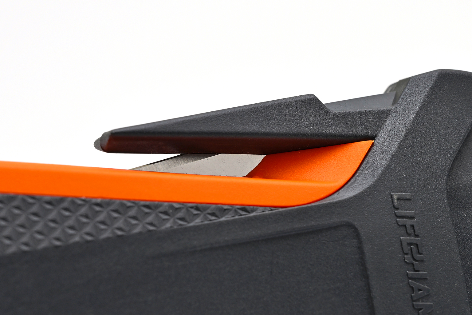 グリップに組み込まれたシートベルトカッターで、シートベルトを簡単に切断することが出来ます。